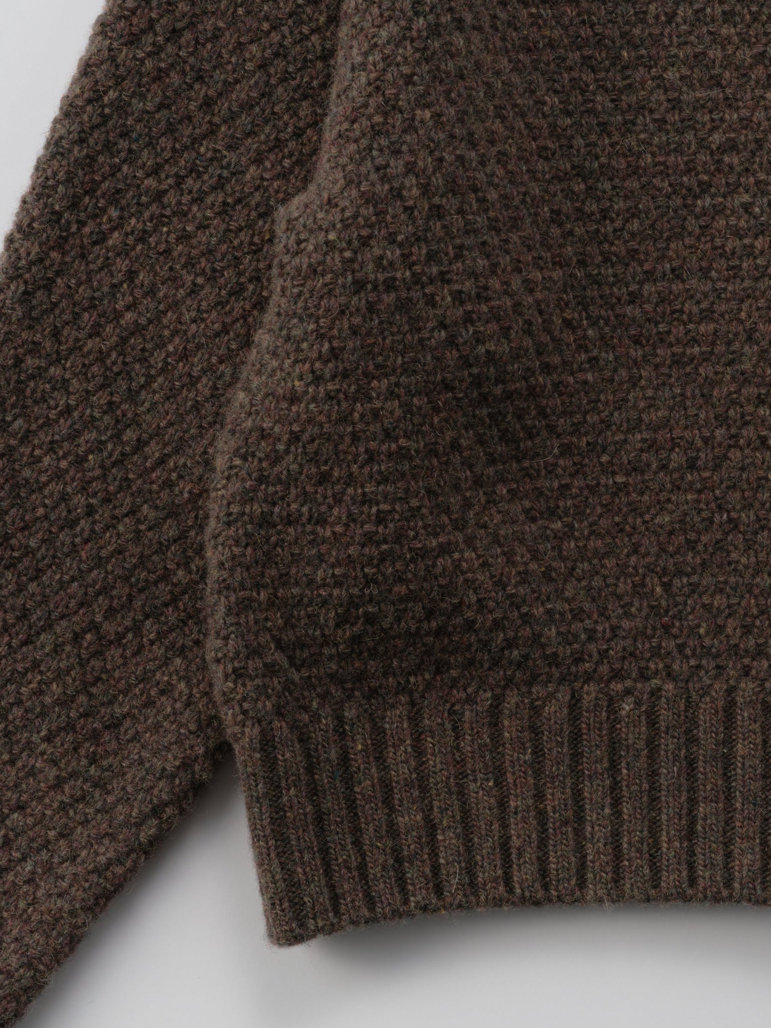 Cardigan en tricot d'inspiration vintage, réalisé dans un mélange doux et chaud de laine de tasmanie et de cashemere. Sa couleur neutre le rend très polyvalent et facile à coordonner.