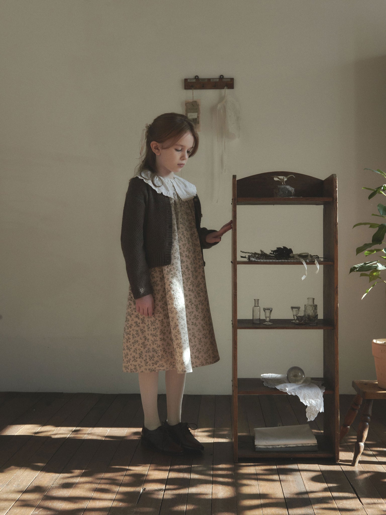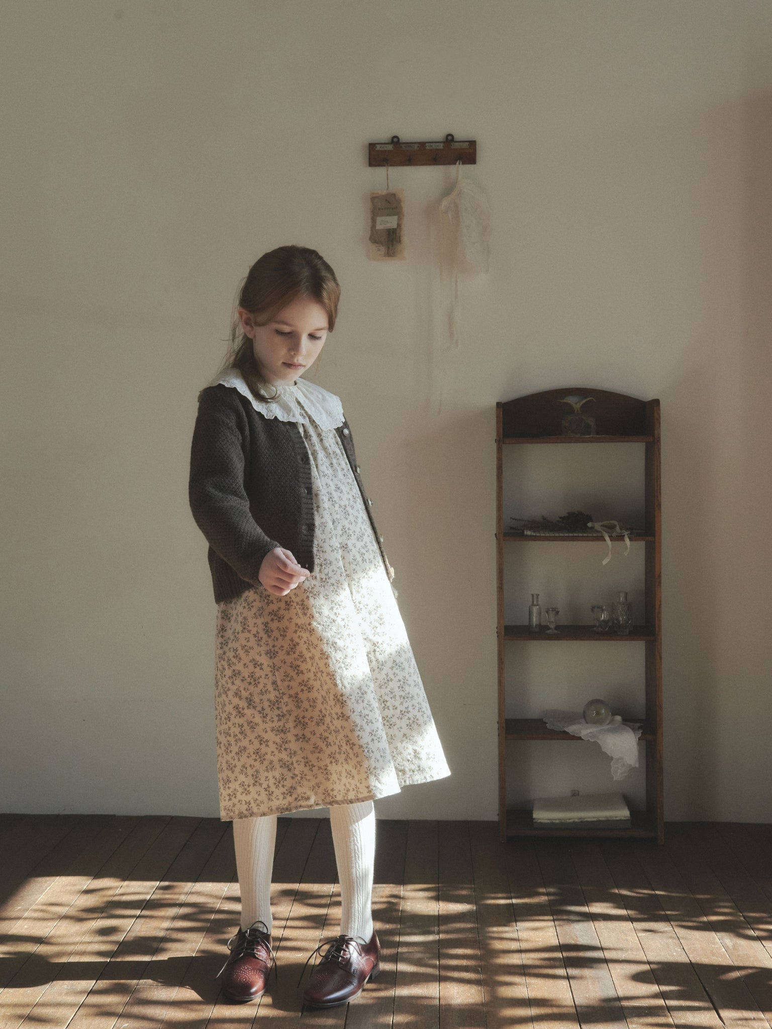 Vintage inspired knit cardigan made in soft and warm tasmania wool and cashemere blend. Its neutral color makes it very versatile and easy to coordinate.