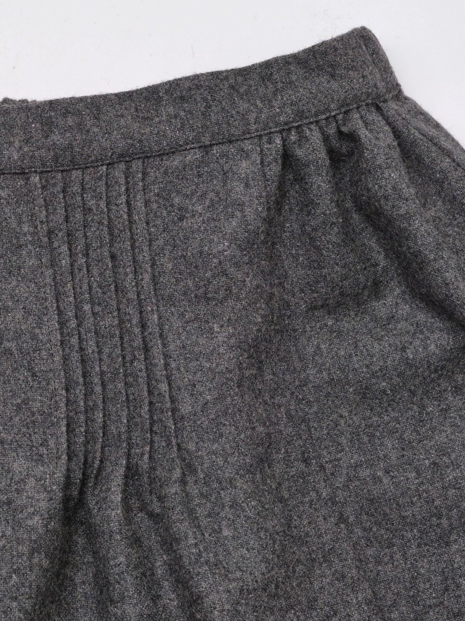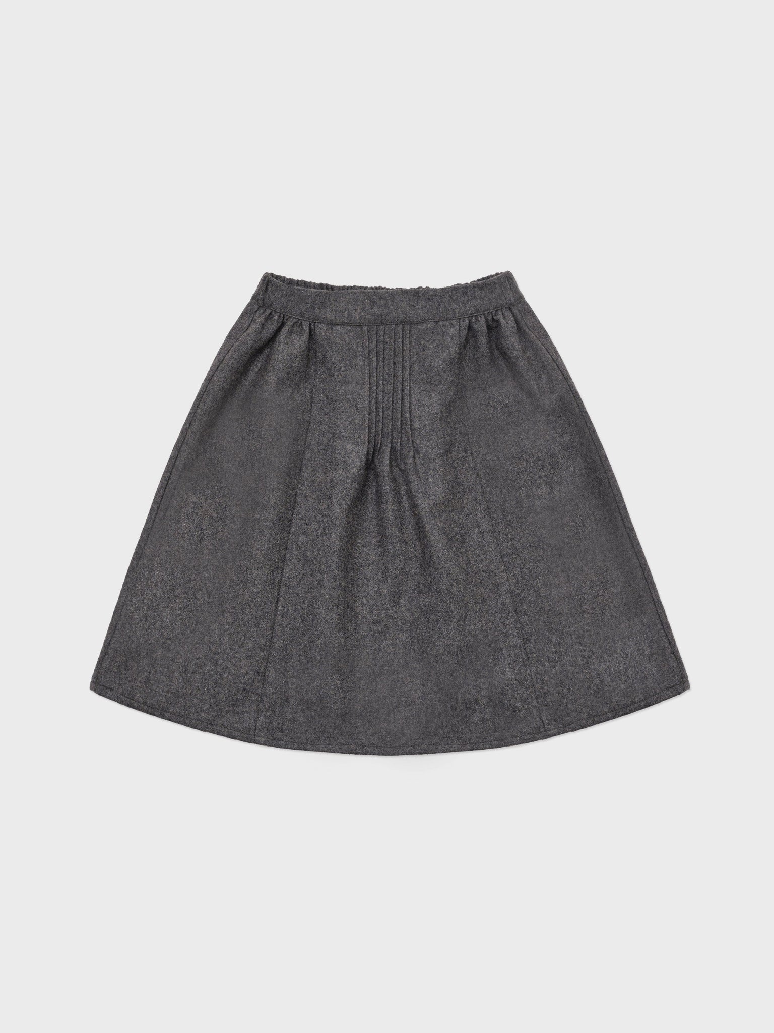 Wool skirt like this one brings welcomed warmth at the beginning of winter. Its knee-length and timeless grey color is lighten up by its rich gathering and pintucks details, bestowing a touch of youthfulness to the otherwise classic style. This soft wool girl's skirt will be a perfect addition to your young lady's winter wardrobe and will match well with our Frenells corduroy Blouse.