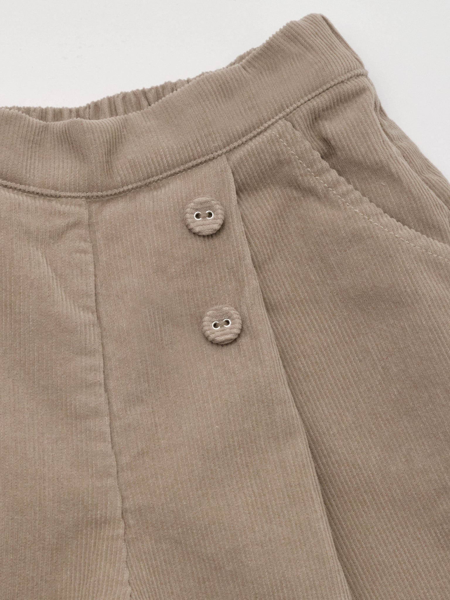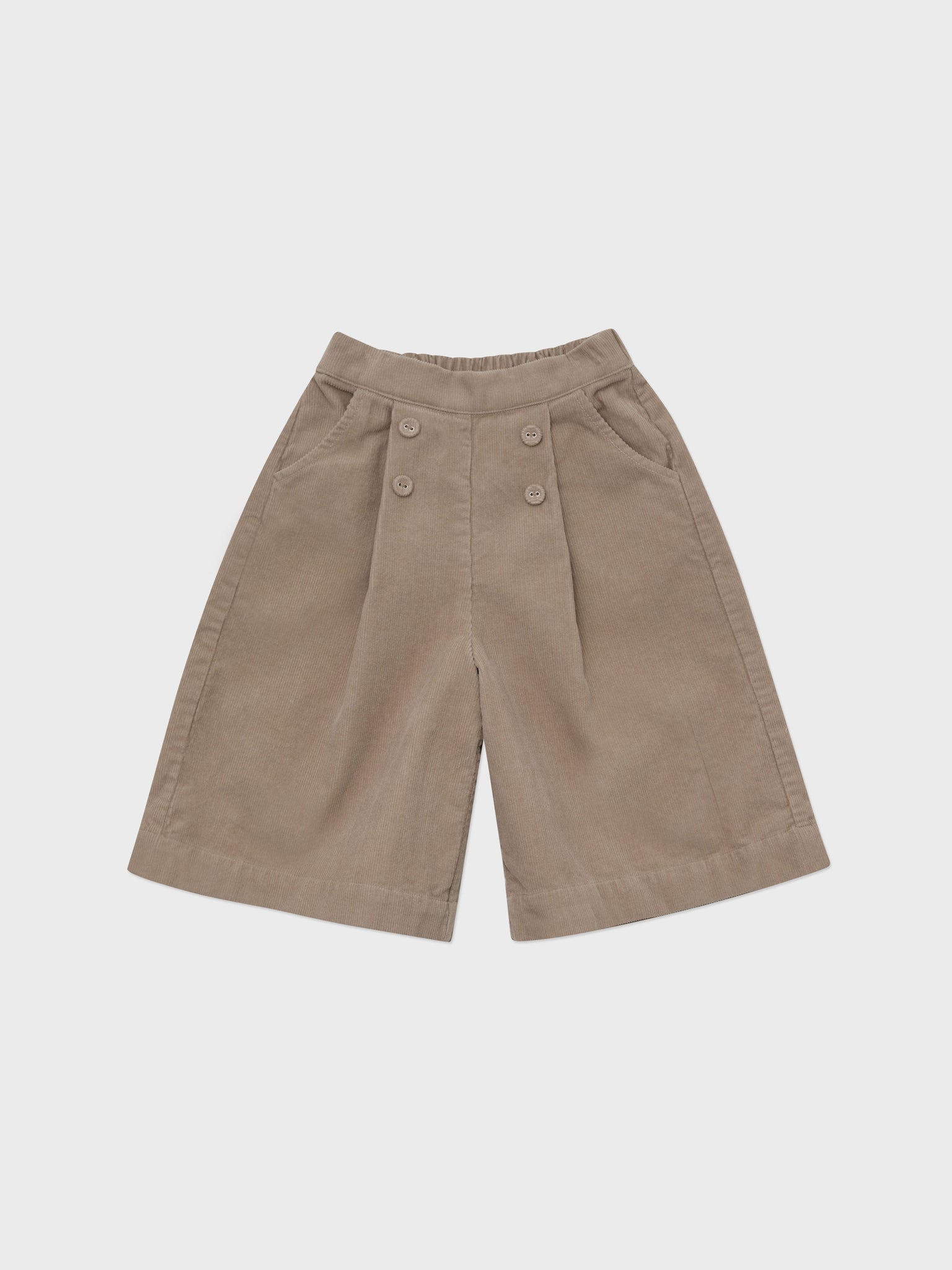 Taking inspiration from sailors' pants and their emblematic double buttoning, our culotte trousers exude undeniable vintage charm. Corduroy pants like these bring welcomed warmth at the beginning of winter, making them a necessary addition to your young lady's wardrobe. Create a vintage schoolgirl ensemble that stands out with sophistication by pairing them with Louisiella's pullovers or blouses.