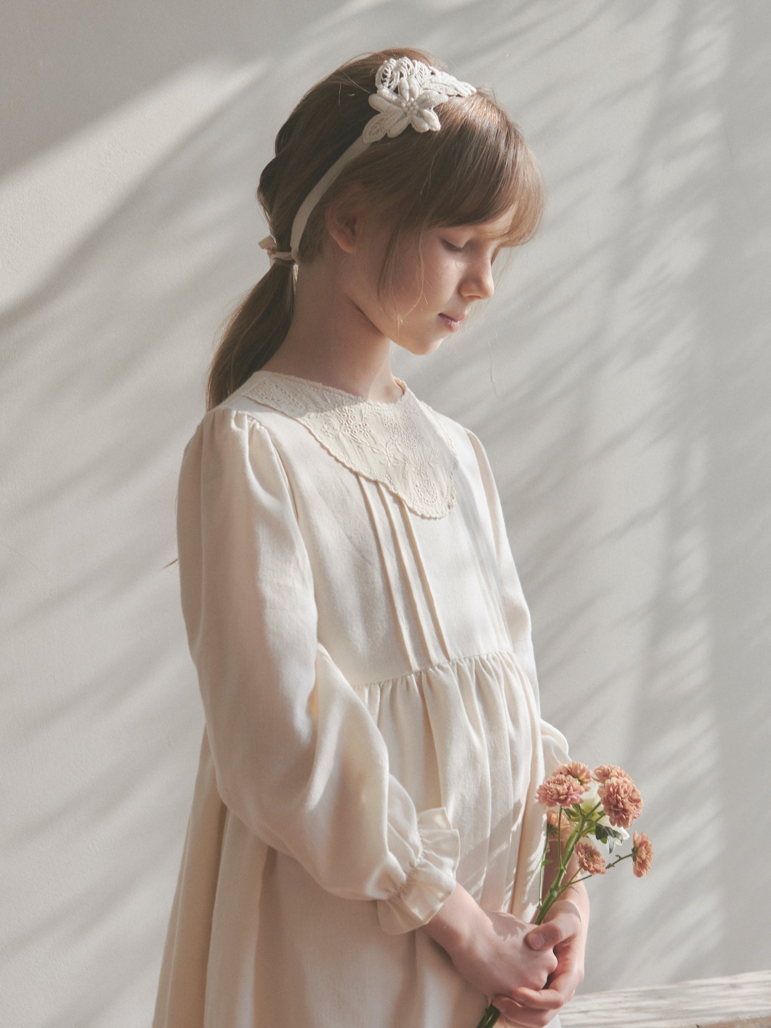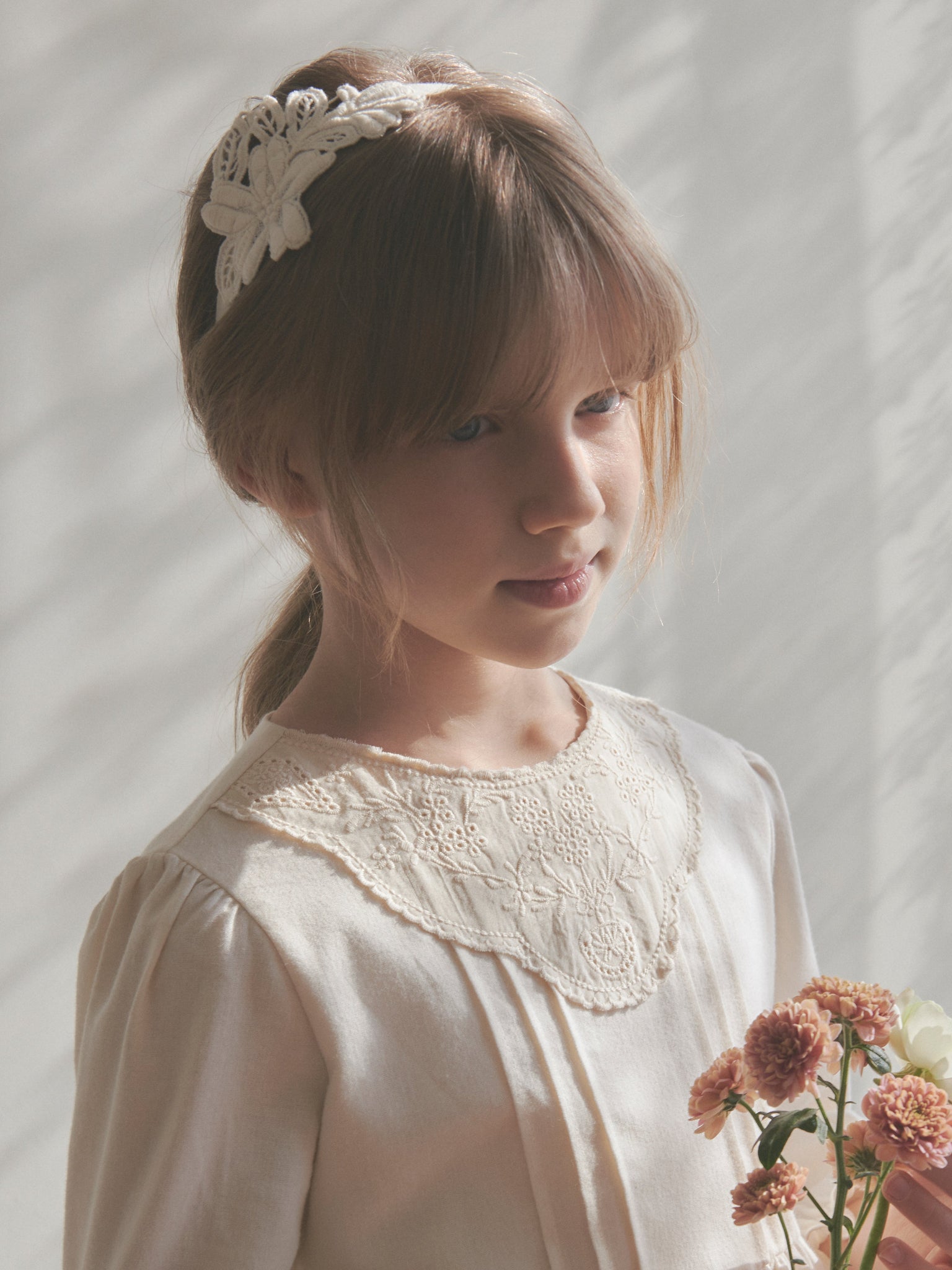 Delicate flower embroidered hairband tied up with a string to add romantism and feminity to any outfit.
