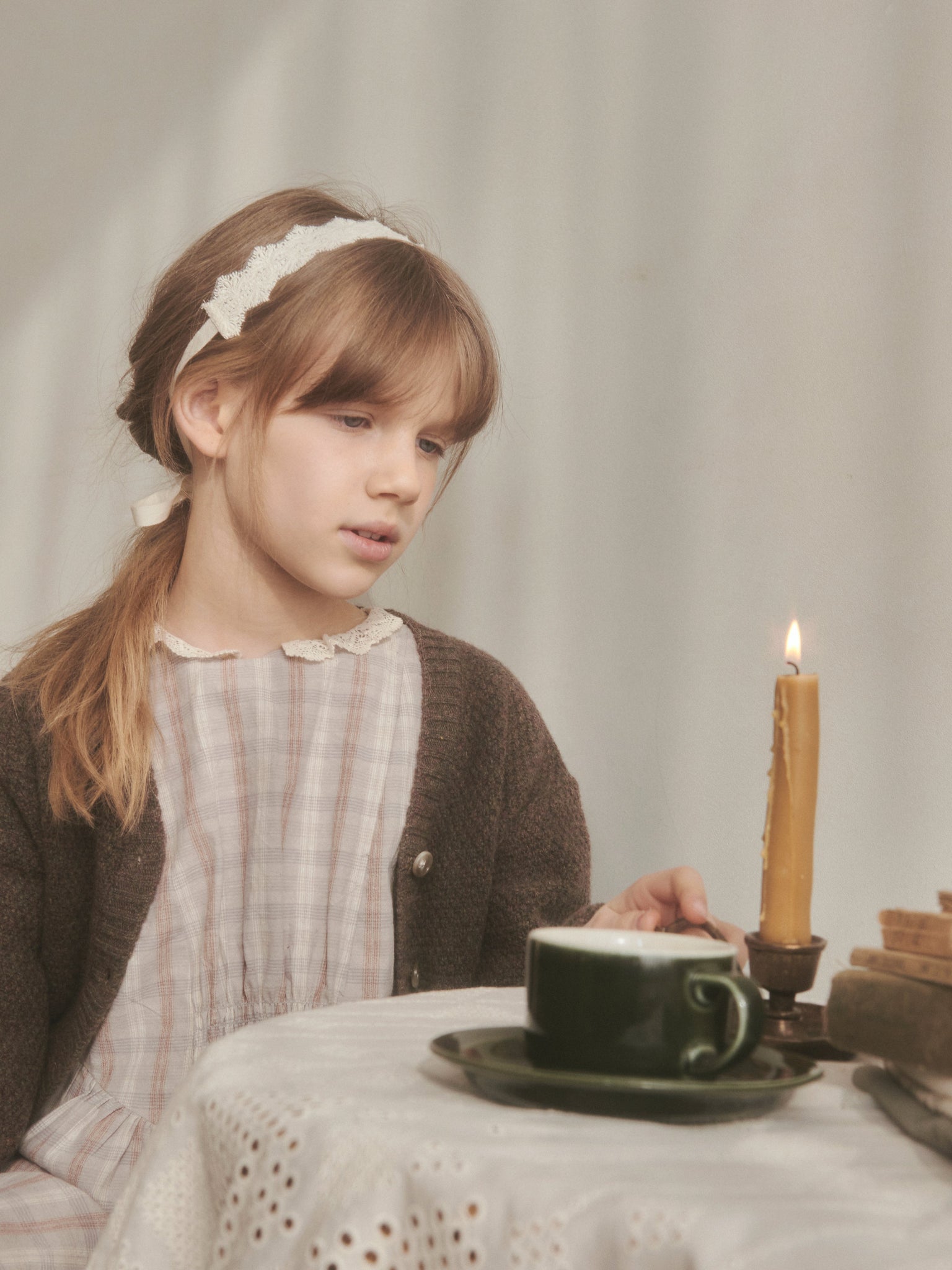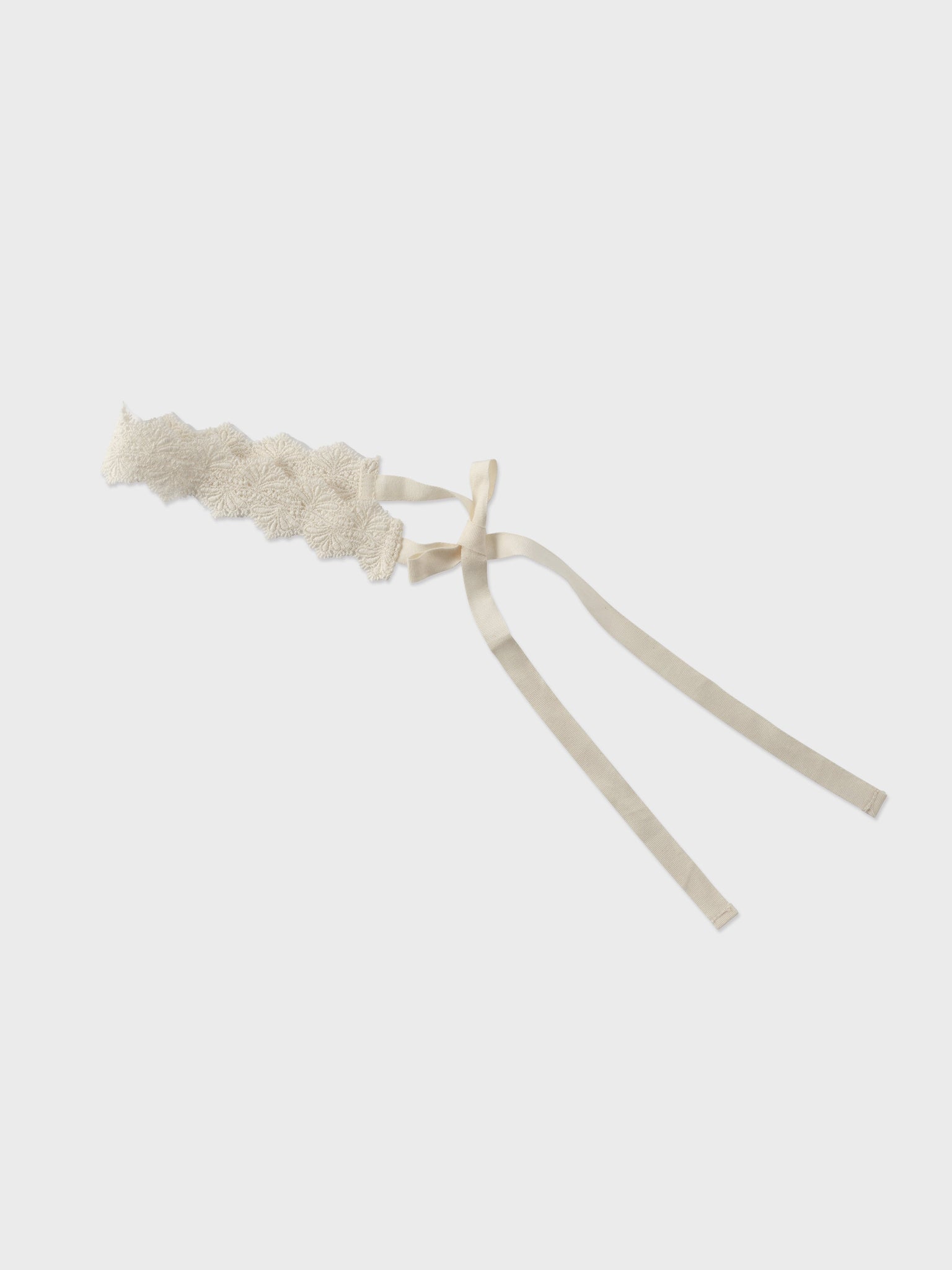 Lovely flower embroidered hairband tied up with a string to add romantism and feminity to any outfit.