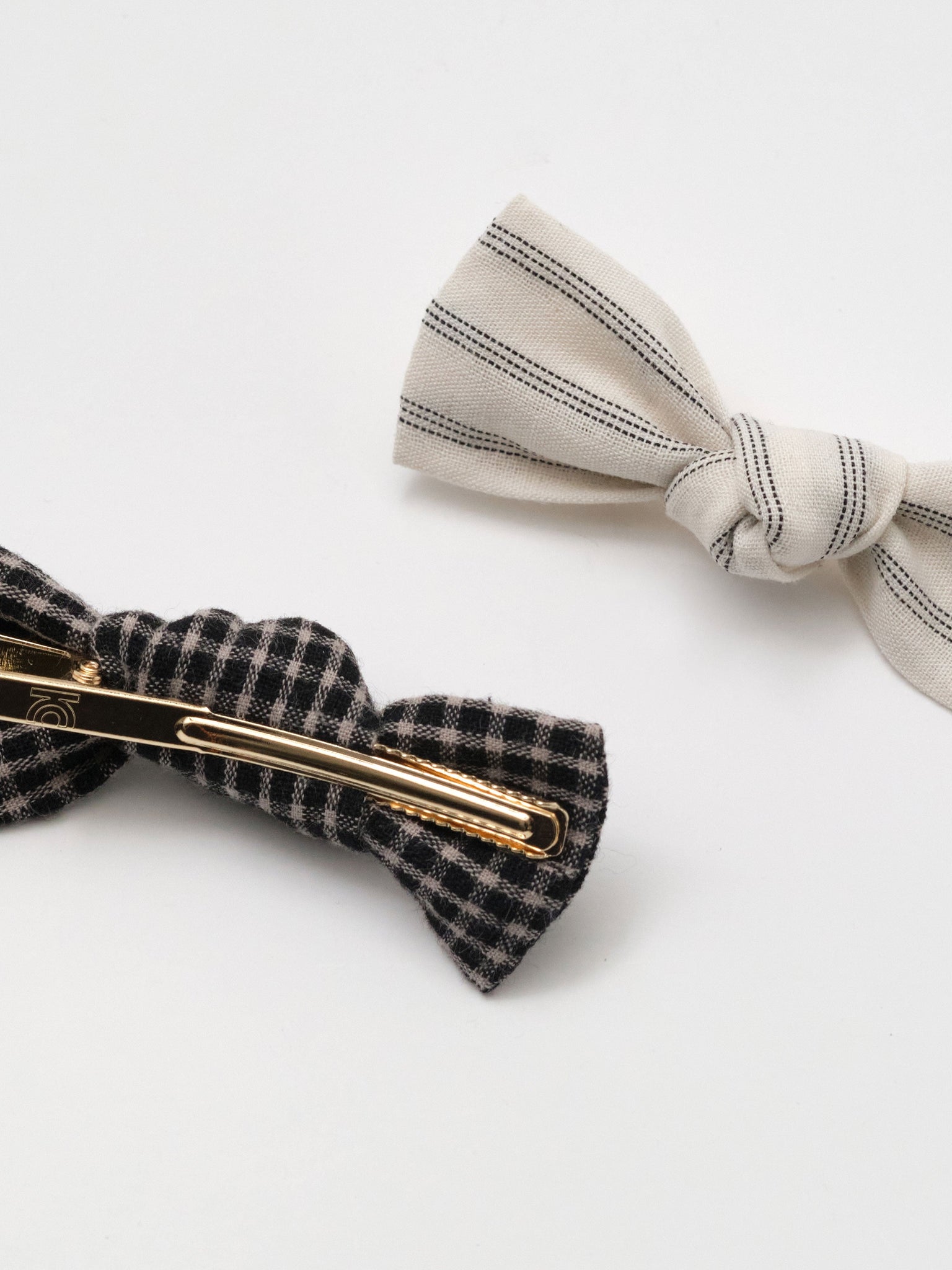 Louisiella's classic hair pin set, now elevated with new seasonal print. Comprise of 2 ribbon hairpin made in cotton matching this season collection, it is a staple of any girl's wardrobe.