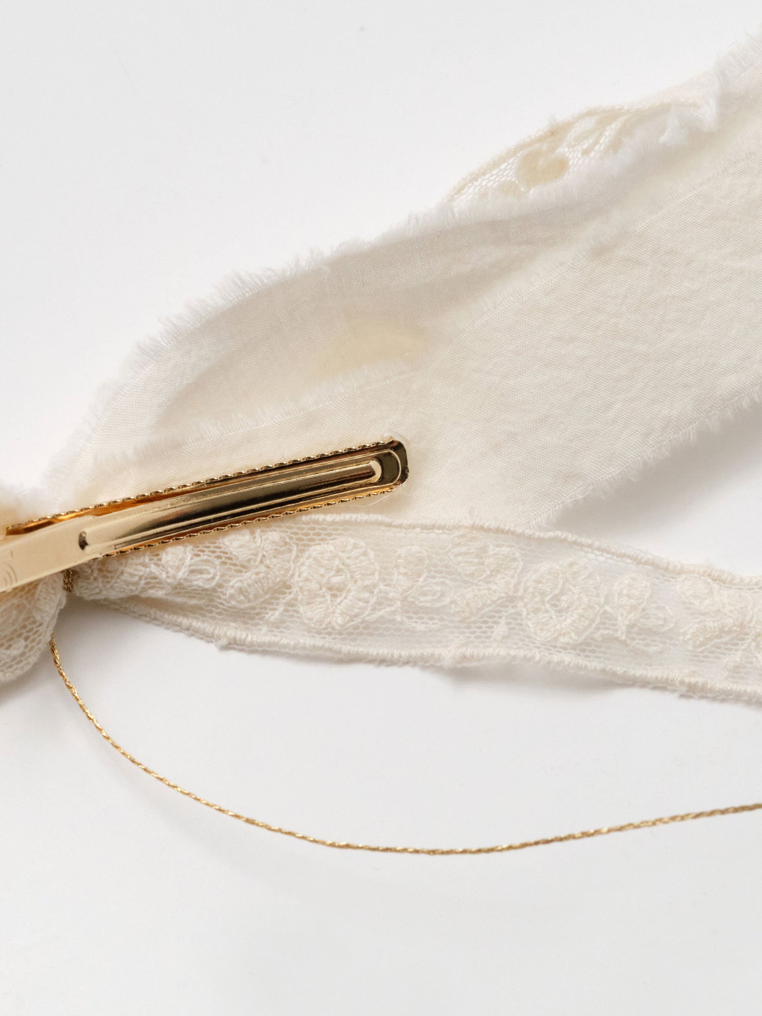 Louisiella's classic ribbon hairpin, now elevated with new seasonal print. Comprise of 2 ribbon made in cotton matching this season collection and lace, it is a staple of any girl's wardrobe.