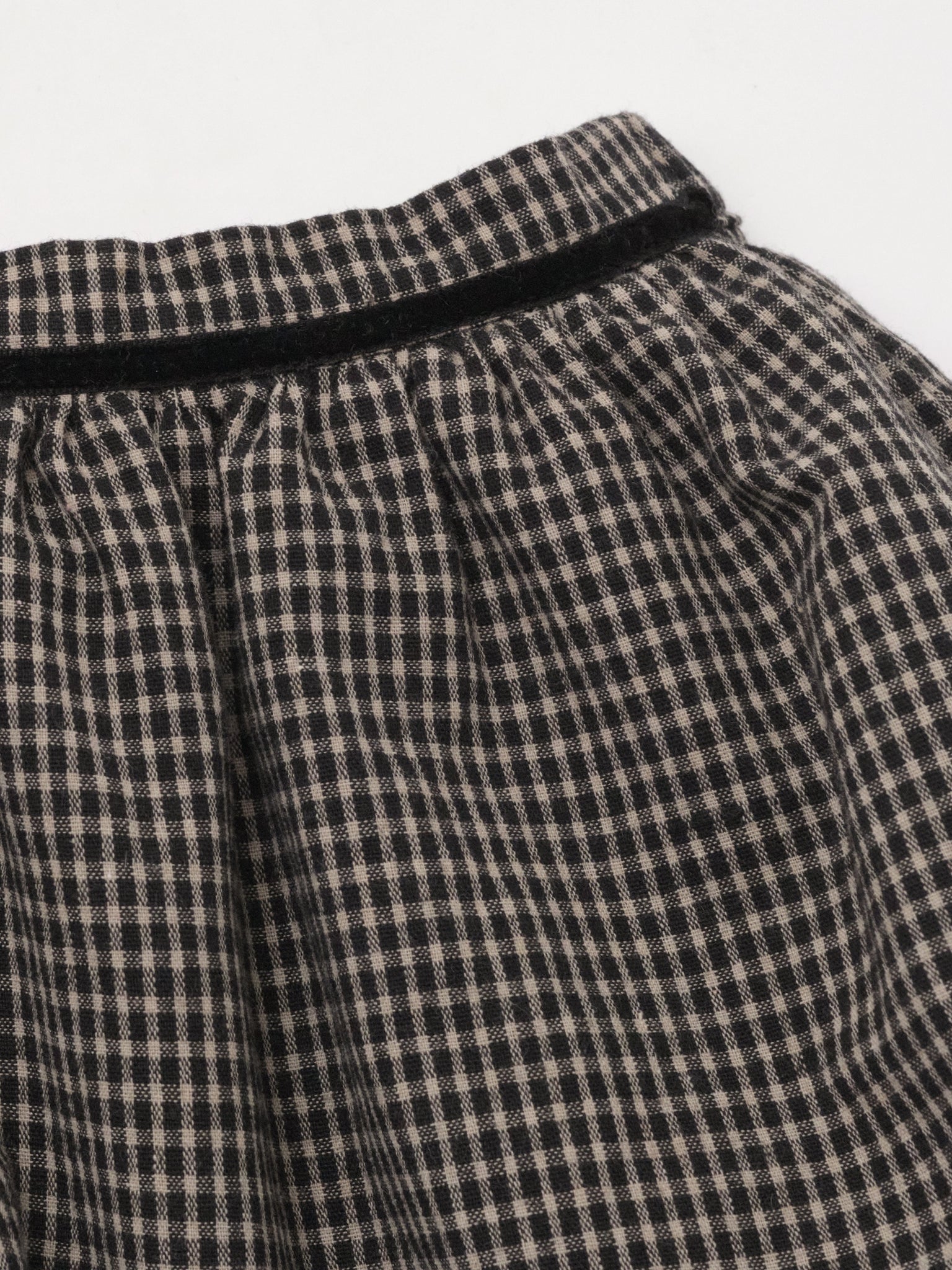 This vintage-inspired baby bloomers is crafted in a timeless and subtle check pattern. Puffy, it envellops baby cutely, while its delicate velvet ornament bestows a touch of elegance to the silhouette. Create a sophisticated baby winter outfit by pairing this bloomers with Louisiella's Baby Mielle Blouse.