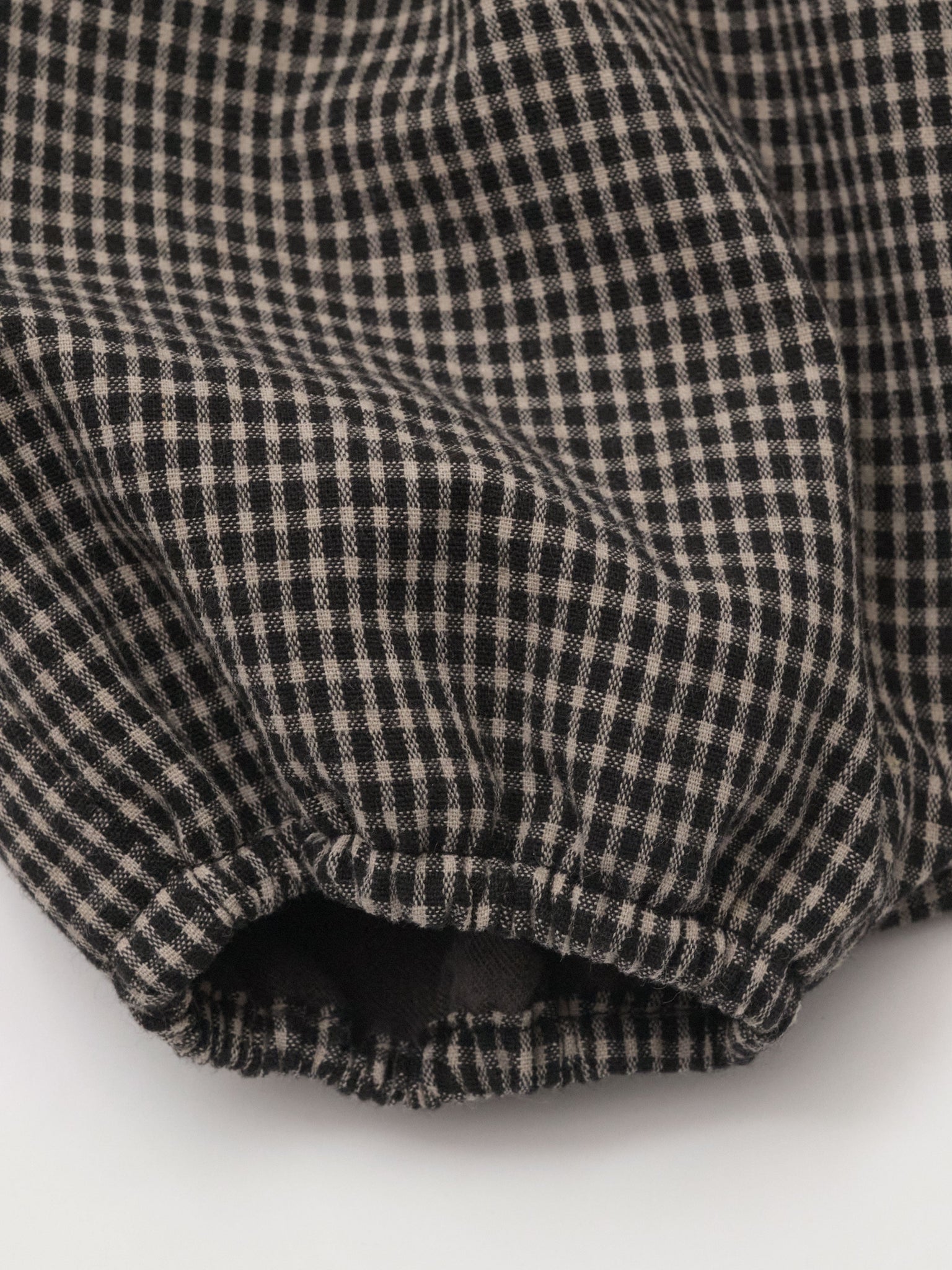 Ce bloomer d'inspiration vintage est confectionné dans un motif à carreaux intemporel et subtil. Bouffant, il enveloppe bébé d'une jolie façon, tandis que son délicat ornement de velours confère une touche d'élégance à la silhouette. Créez une tenue d'hiver sophistiquée pour bébé en associant ce bloomer à la Baby Mielle Blouse de Louisiella.