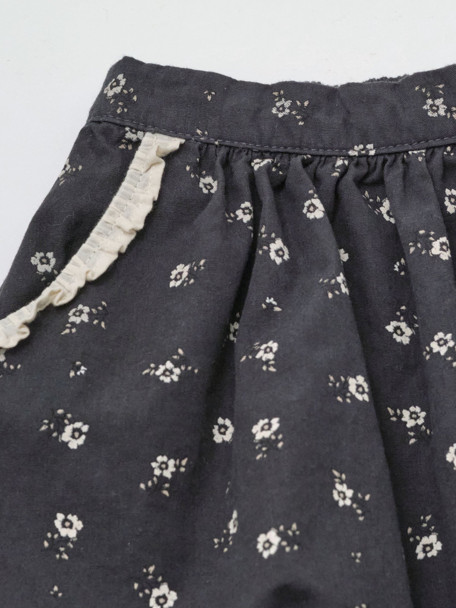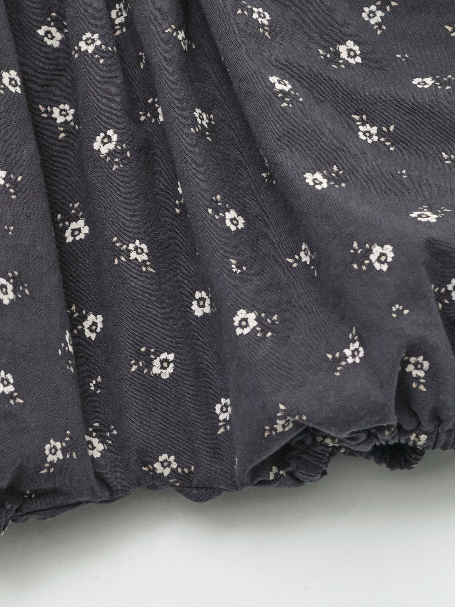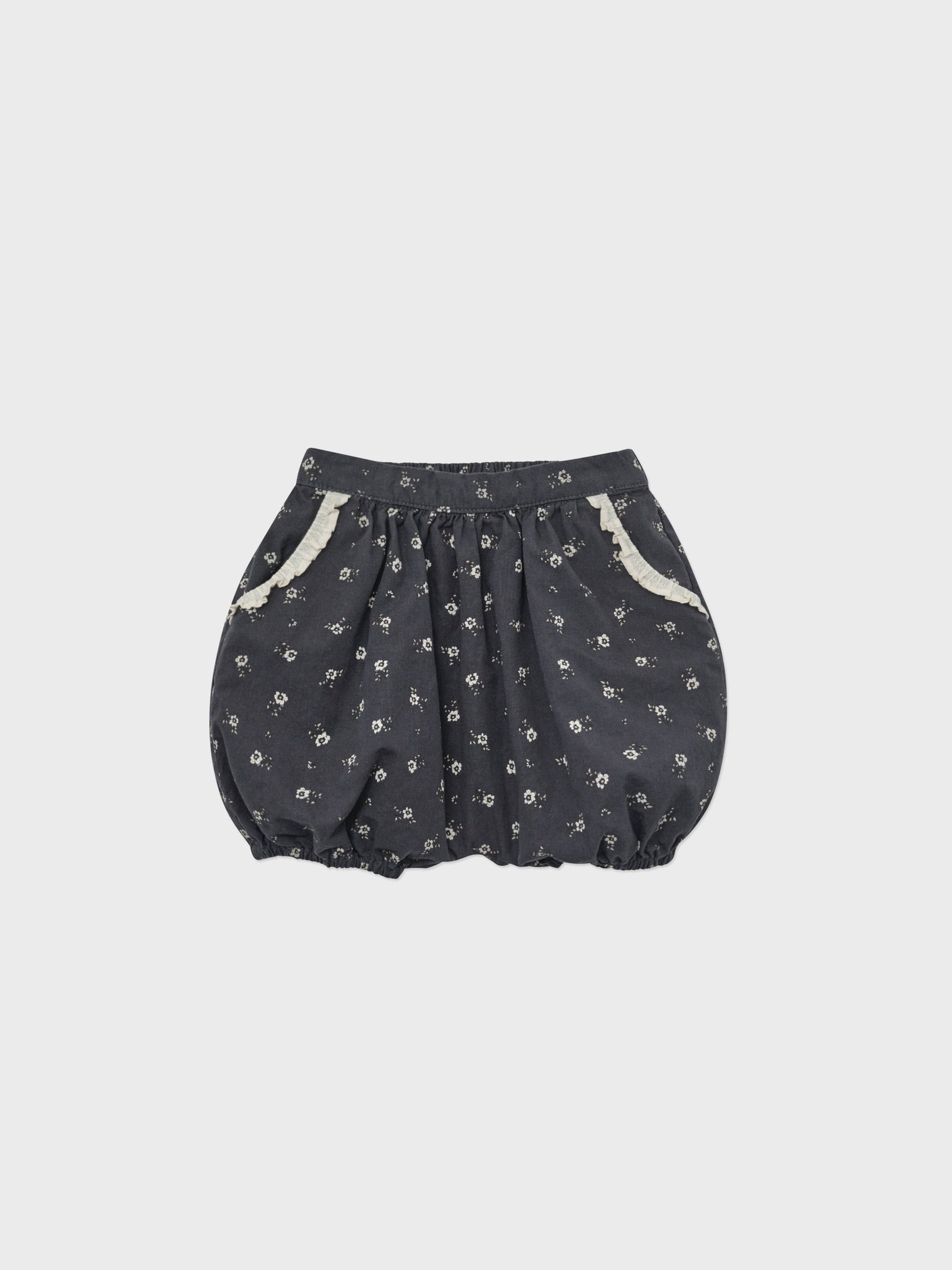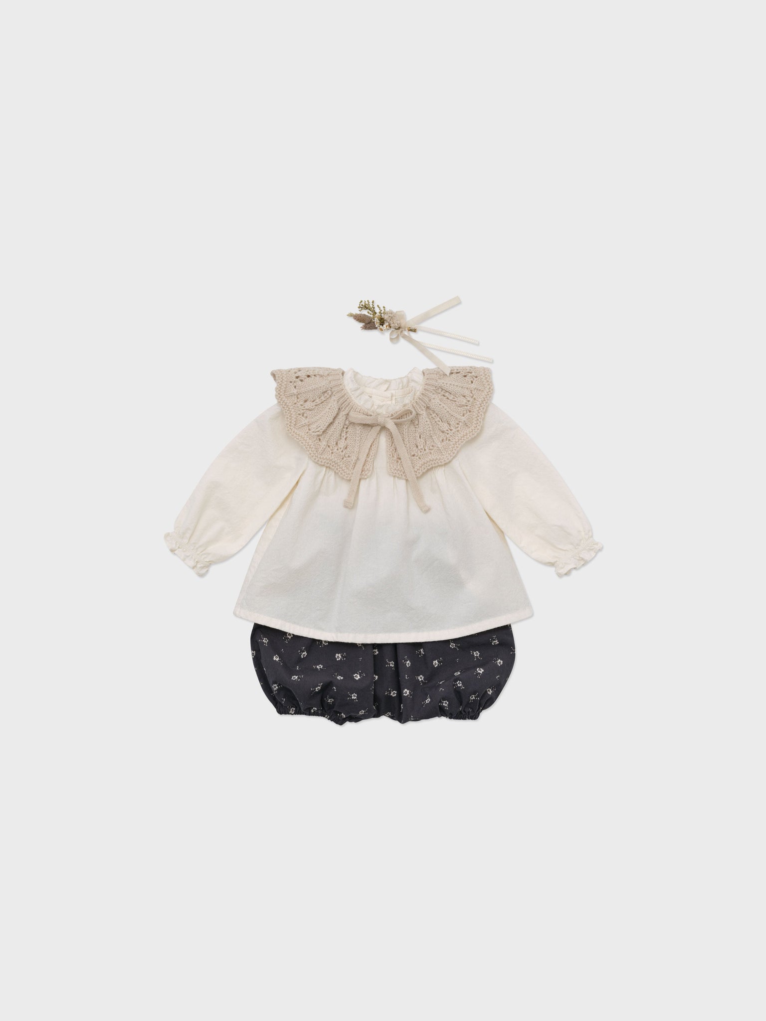 Introducing a lovely girl's bloomers in a dainty and dark floral print, a new creation of the season by Louisiella.Puffy, it envellops baby cutely, while its delicate contrasting velvet ornament bestows a touch of playfulness to the silhouette. Vintage bloomerss like these are timeless, making them an instant classic in your baby girl's wardrobe. For a complete vintage look, effortlessly pair it with our Mielle Blouse.