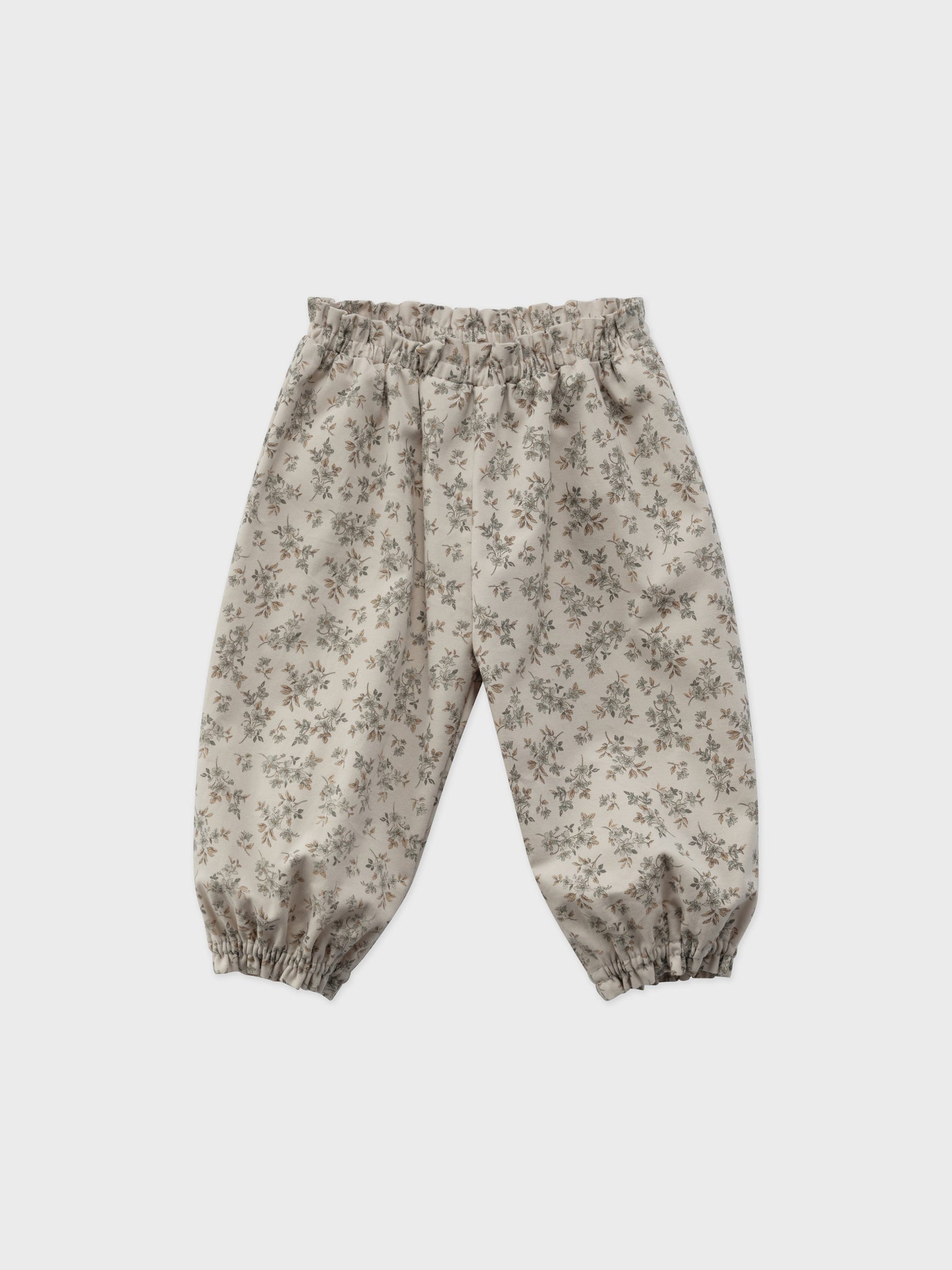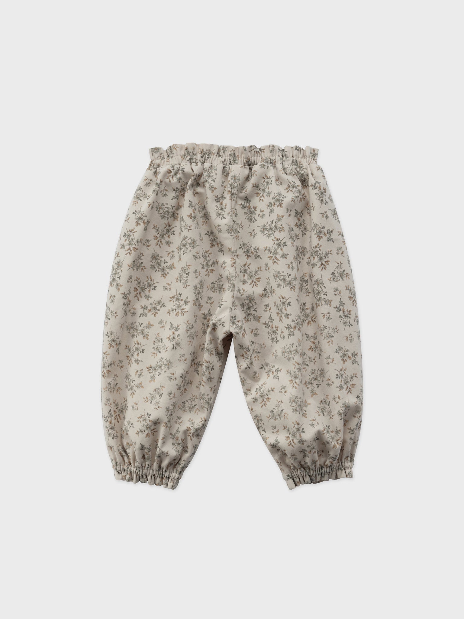 Flower printed baby pants with Louisiella's signature sensibility. Its frills at the waist and bottom legs adds to its loveliness.