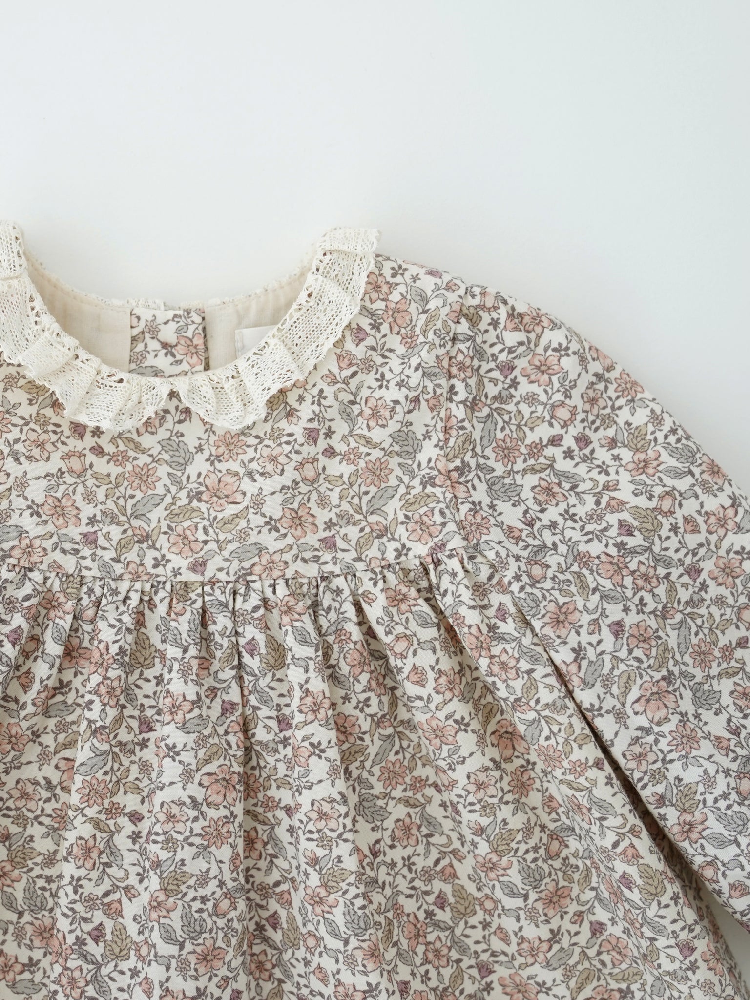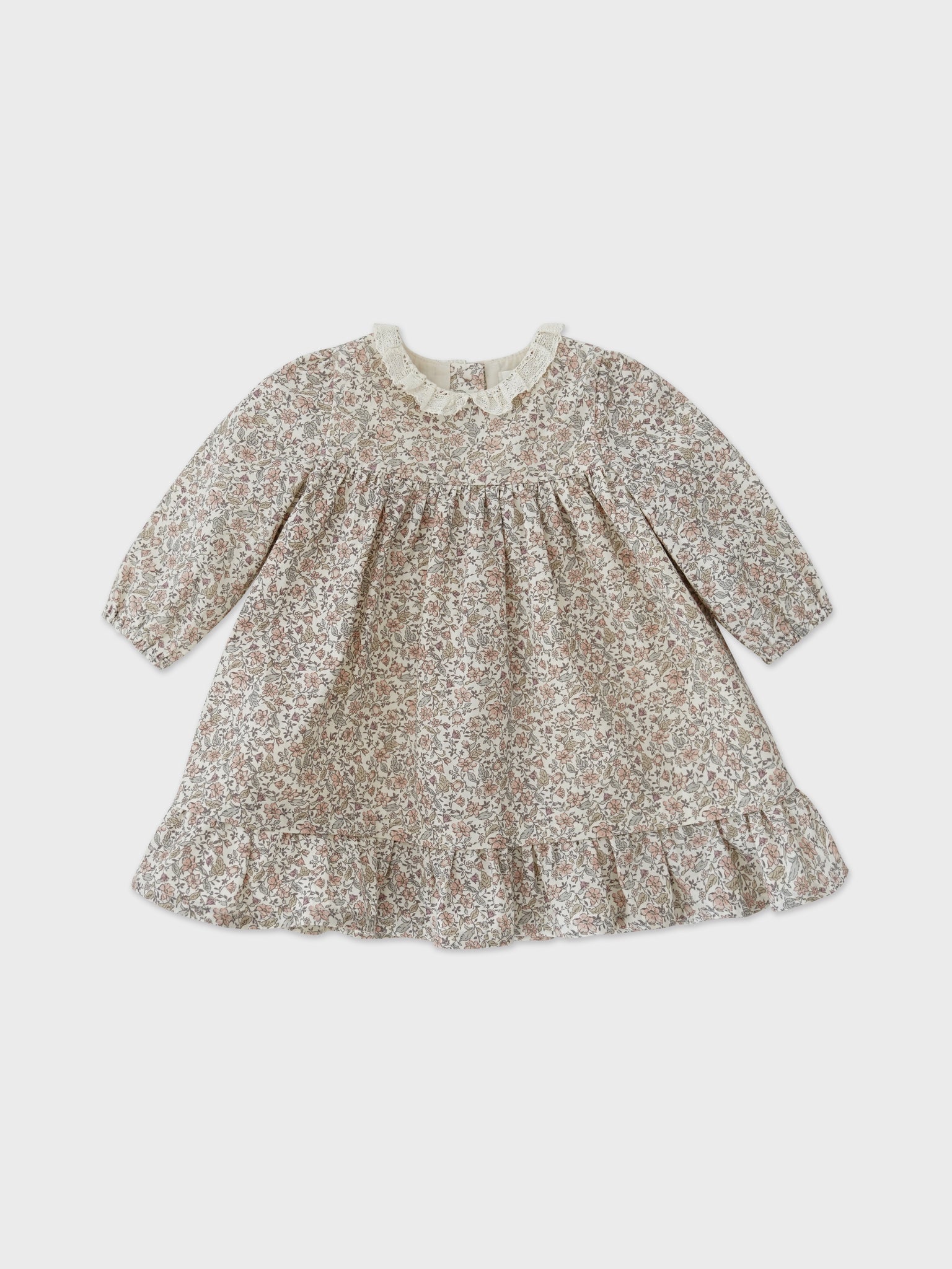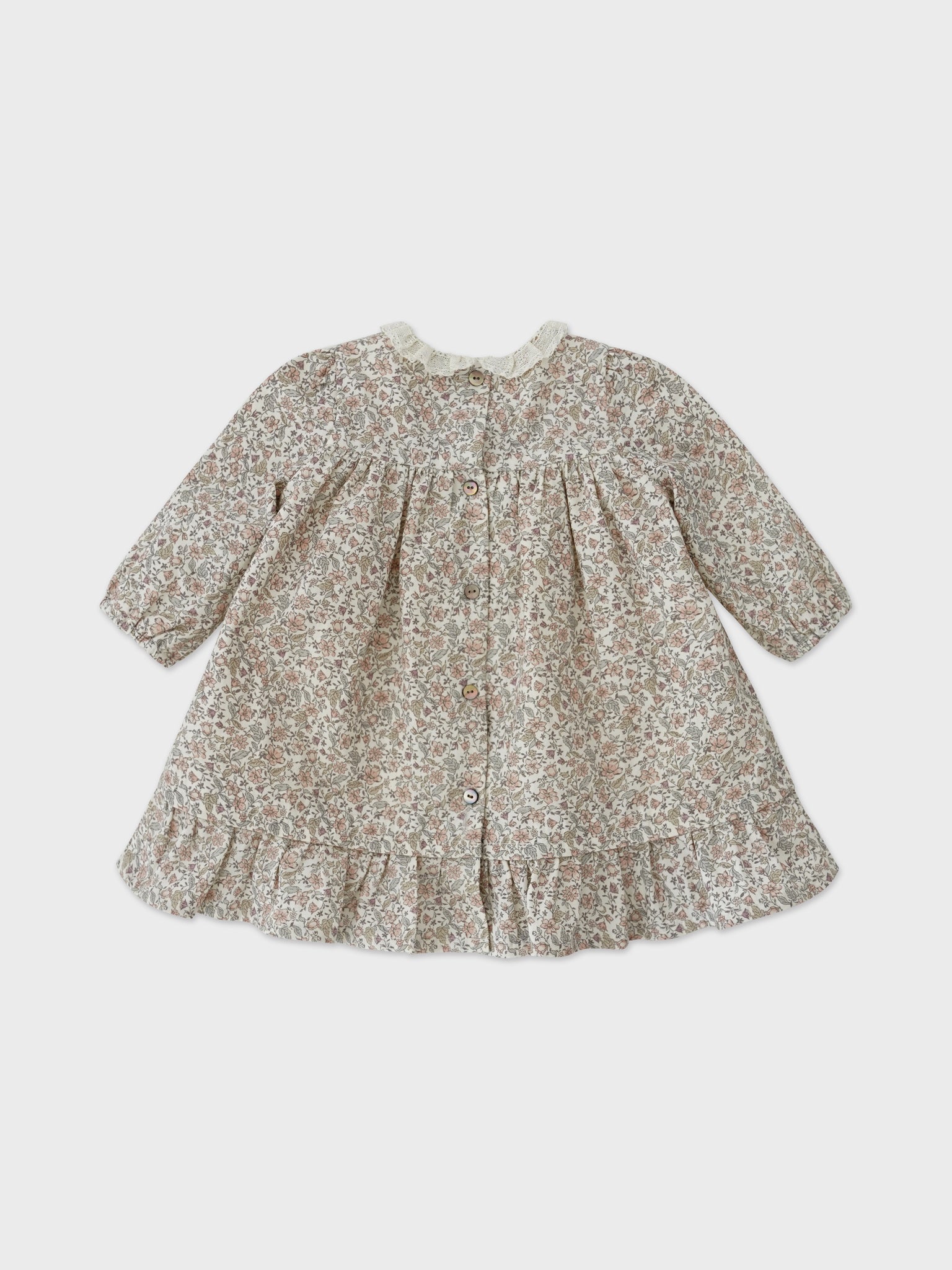 With its contrasted collar and sentimental flower print, this dress has a vintage sensibility, signature of Louisiella's style.