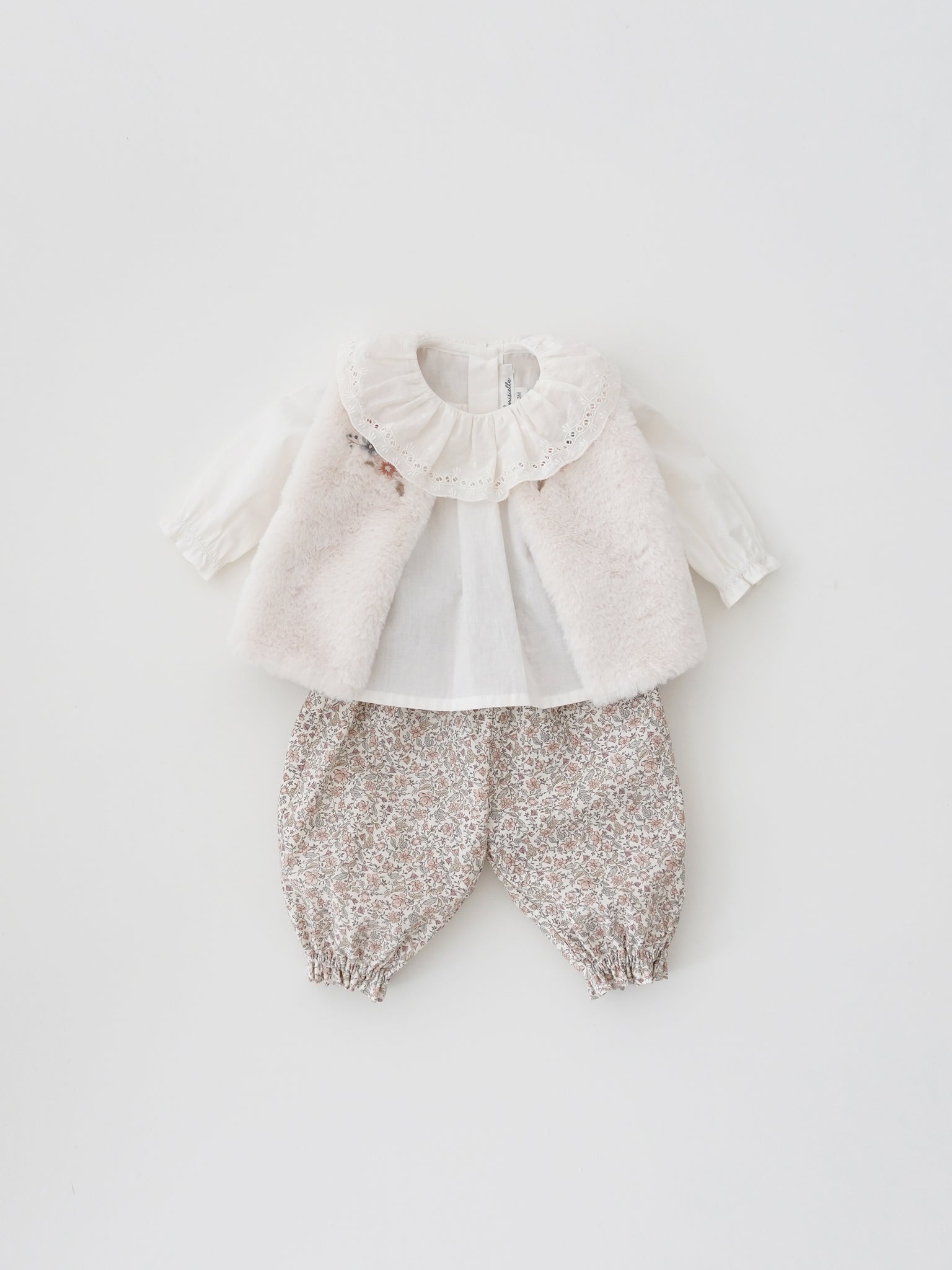 Mignon et adorable pantalon de bébé dans un imprimé floral sentimental, il a une sensibilité vintage, signature du style de Louisiella.