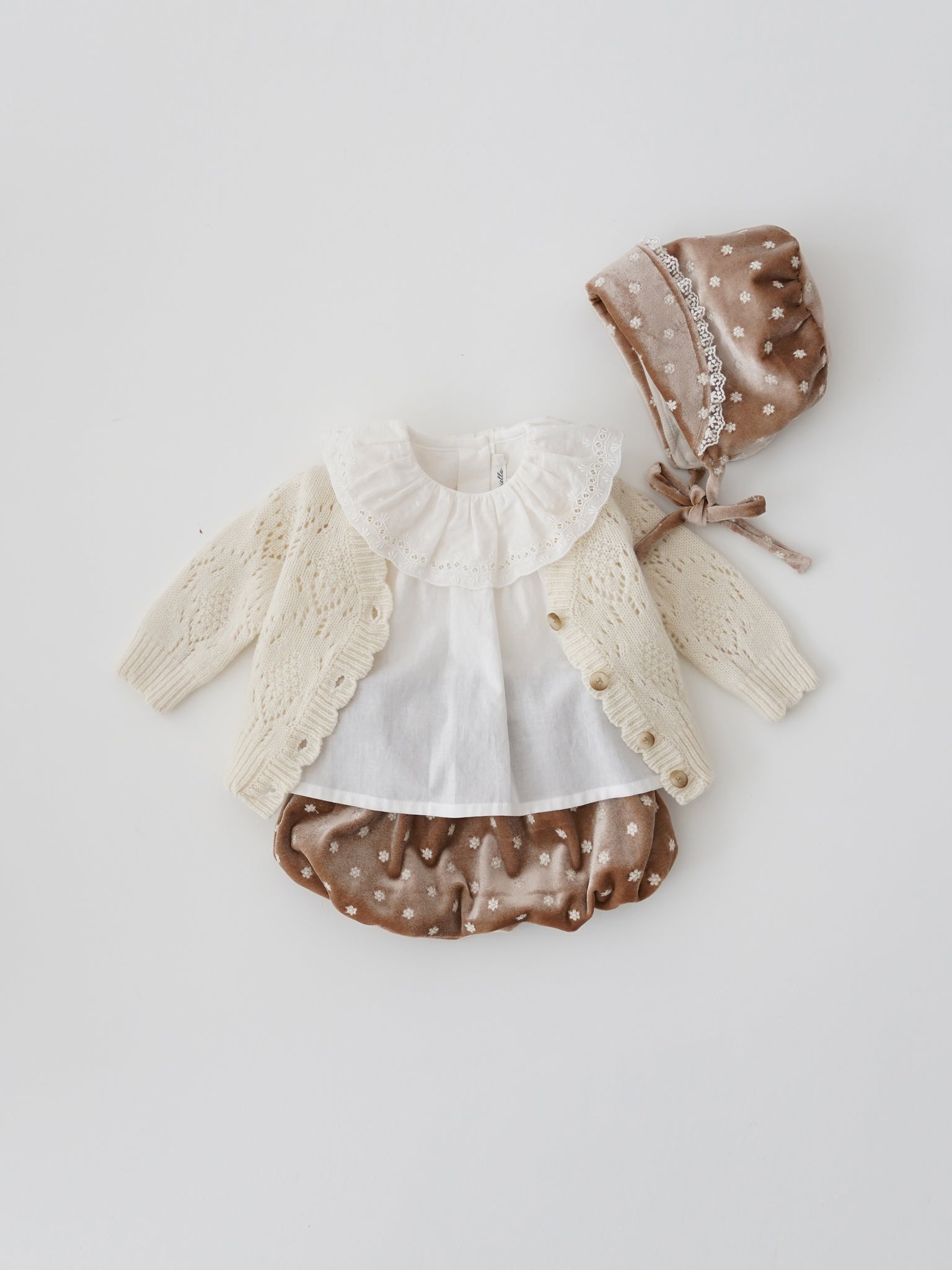 A pure and soft baby blouse, enhanced by louisiella's signature style large collar, perfect to wear with a cardigan.