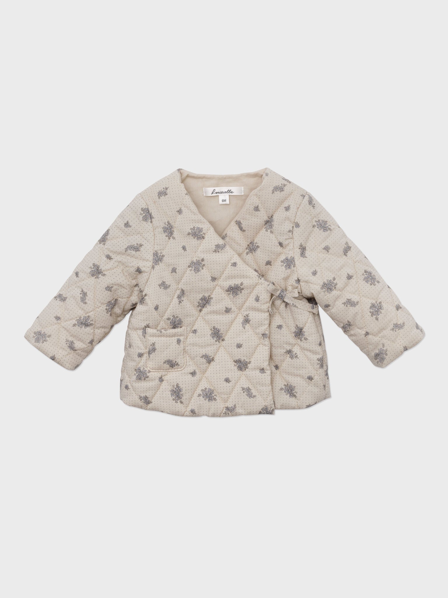 Perfectly designed for the cold month of winter, our baby quilted jacket will keep your little one warm with its 2oz padding. Featuring a wrapping closure and a vintage floral print, this winter jacket's print will highligth your baby girl outfit.