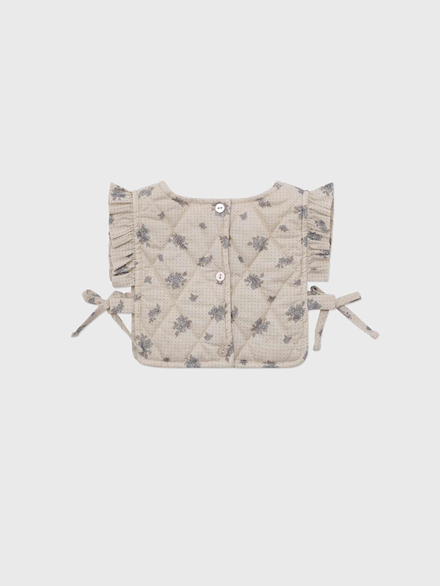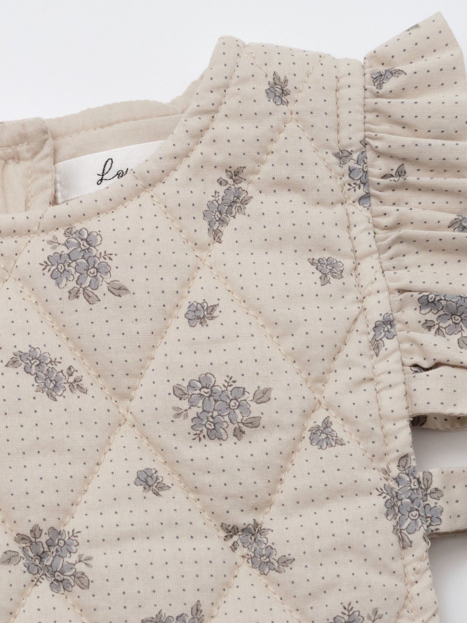 Designed with versatility in mind, this baby padded vest will keep your little one warm with its 2oz padding. Featuring delicate ruffles and a vintage floral print, this quilted vest invites layering over baby's outfit, effortlessly providing warmth to your young lady, while its print will highligth her outfit.
