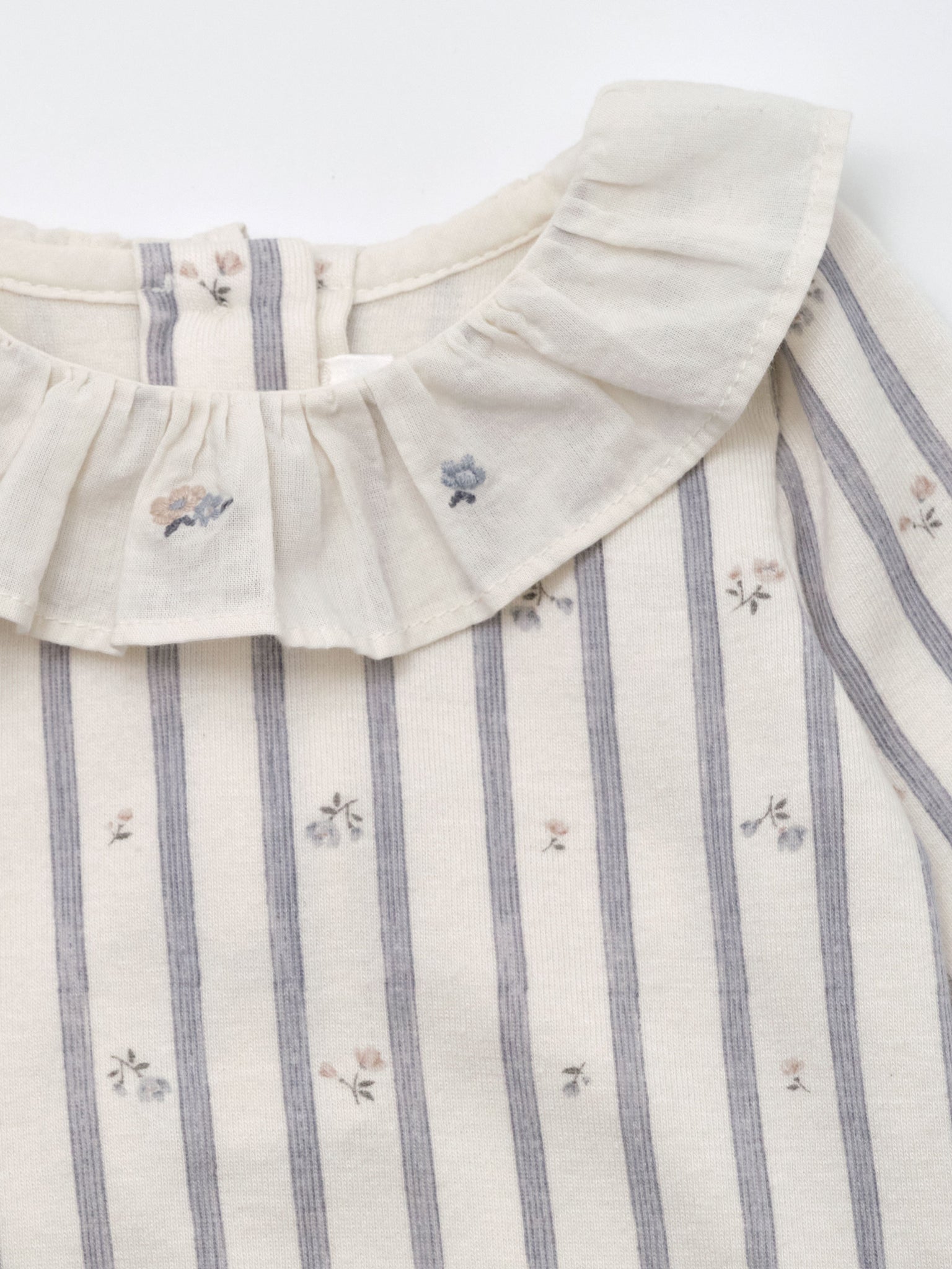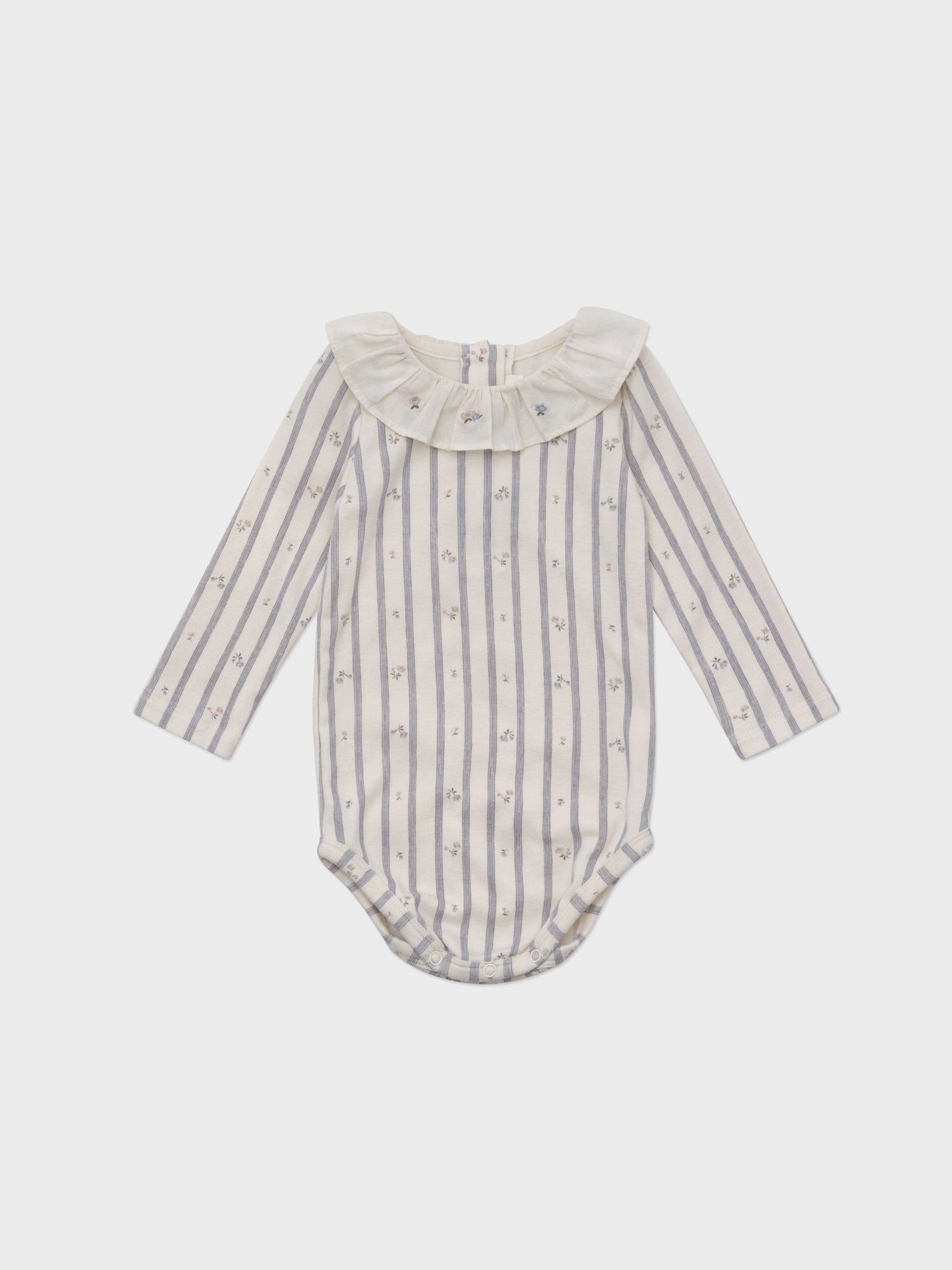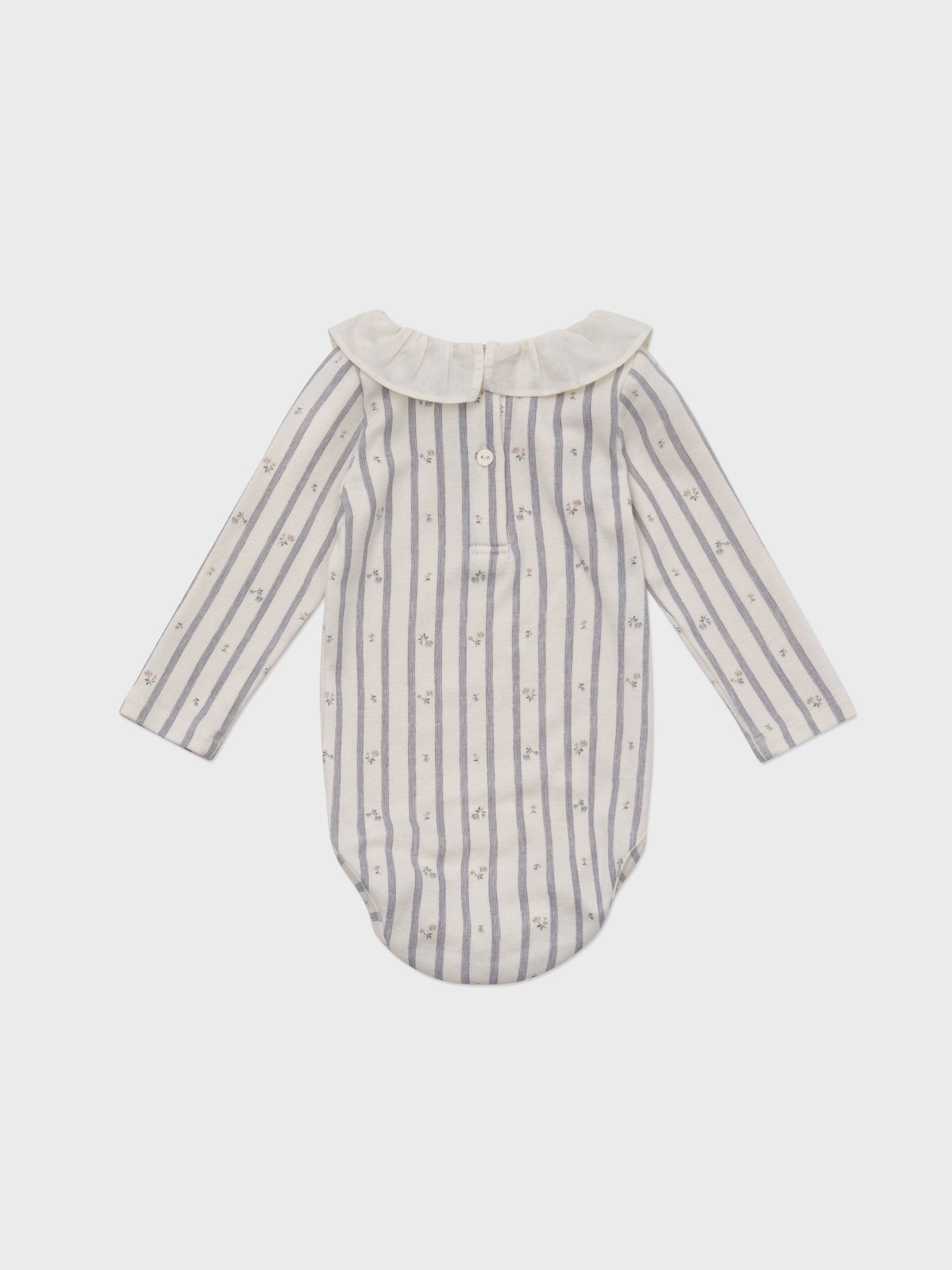 Louisiella's classic baby bodysuit, now elevated with new seasonal print. With its long sleeves and lace collar in our signature soft and strecthy cotton modal fabric blend, it is a staple of any baby girl's wardrobe.