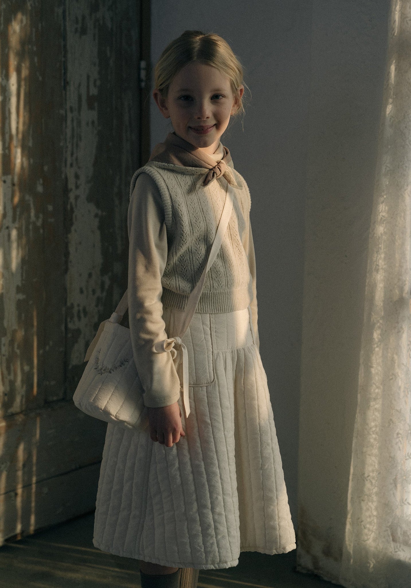 Every little girl deserves a charming purse to carry her precious belongings. Introducing Louisiella's quilted bag, thoughtfully designed to complement our Diamant line. Adorned with delicate flower embroidery that perfectly matches, it effortlessly completes your young lady's winter outfit while offering the practicality she needs.